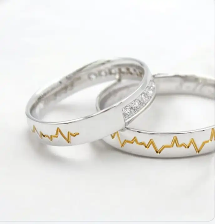 Alianza de boda bicolor combinando oro amarillo y oro blanco de 18 quilates. Diseño único y versátil.