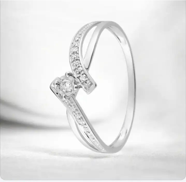 Anillo de oro blanco con tres diamantes que representan pasado, presente y futuro. Diseño clásico y significativo.